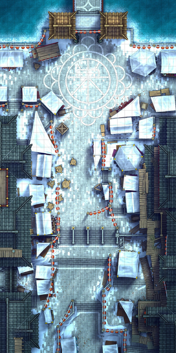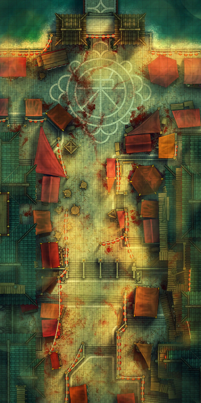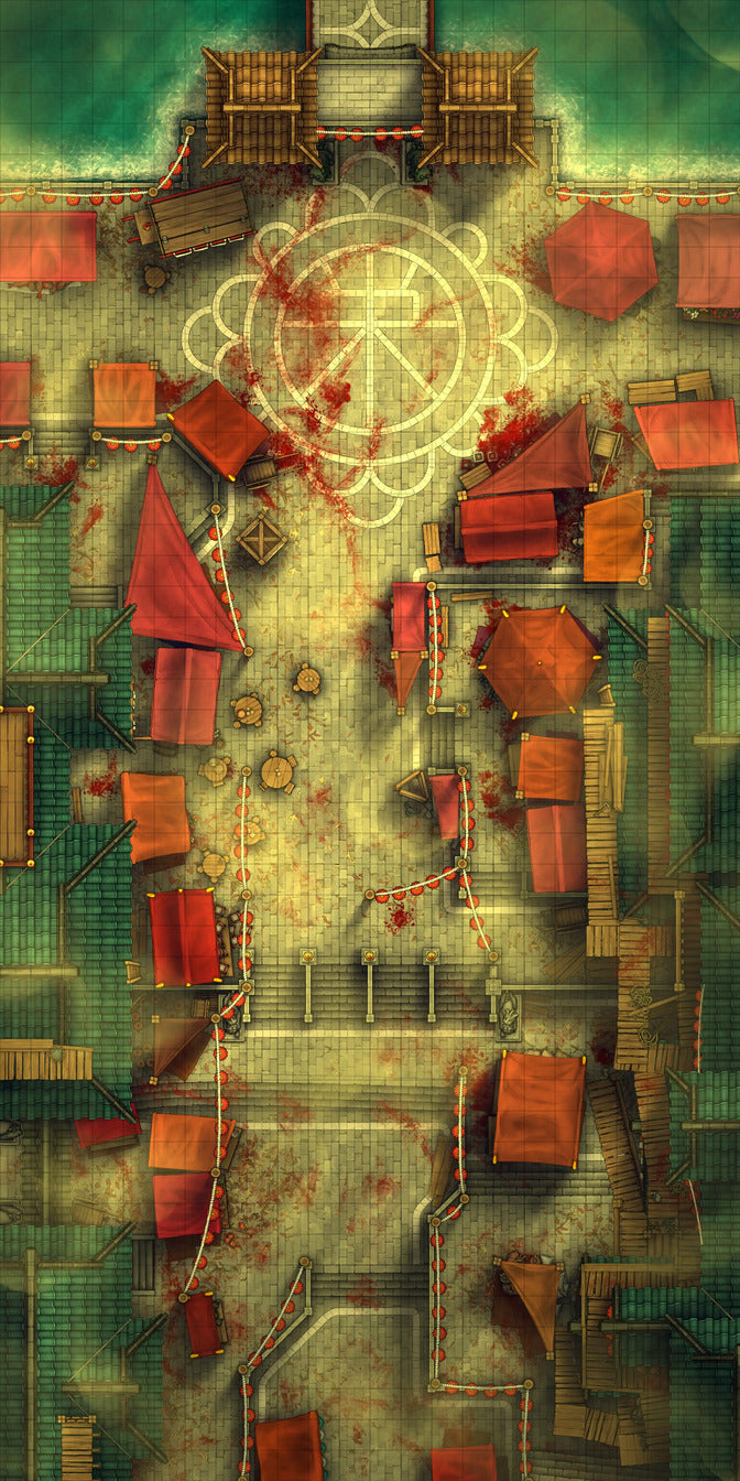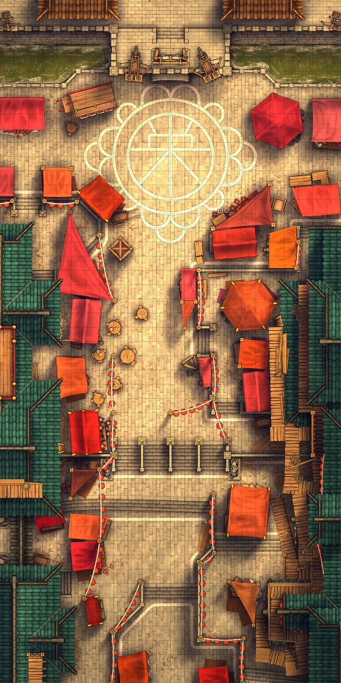 A capital city’s main streets house hawkers by the hundreds as well as your players’ next battle! Perfect for when someone gets denied entry & decides violence is the only solution.