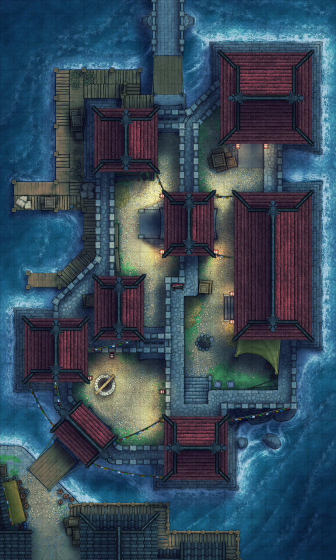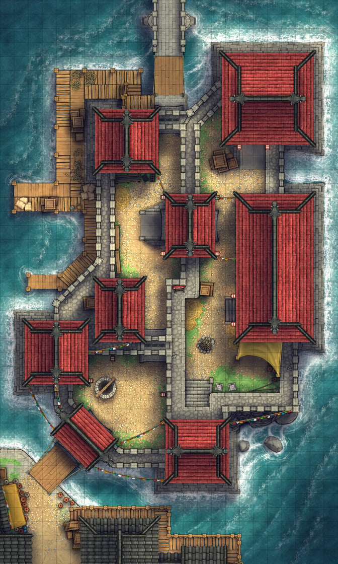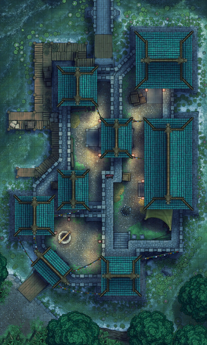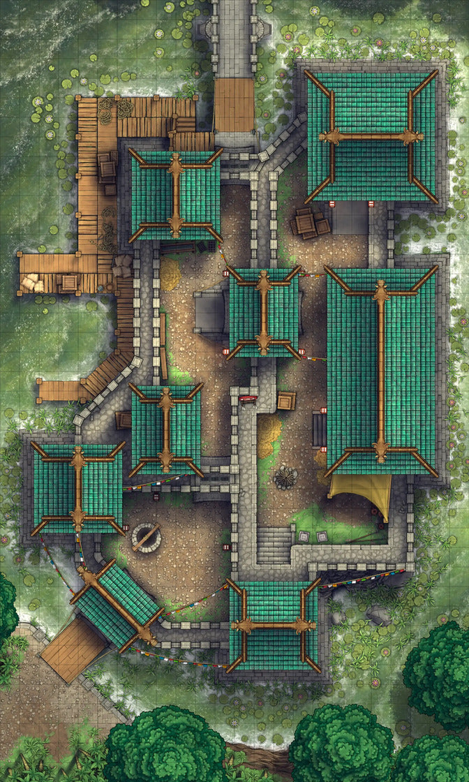 A riverine Chinese-inspired fortress battlemap for defending trade routes, guarding river crossings, collecting customs fees & holding ransom any local hostages! No matter whether in a local village or on the frontier, a sturdy wall & defense-in-depth will protect the Emperor’s interests … & his local commander.