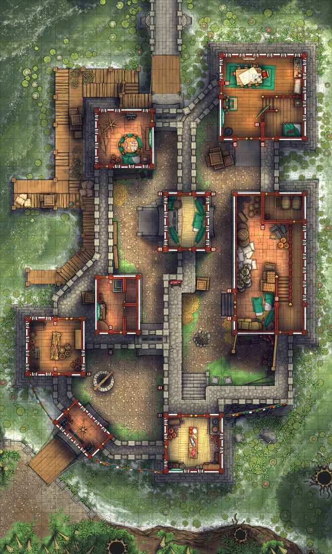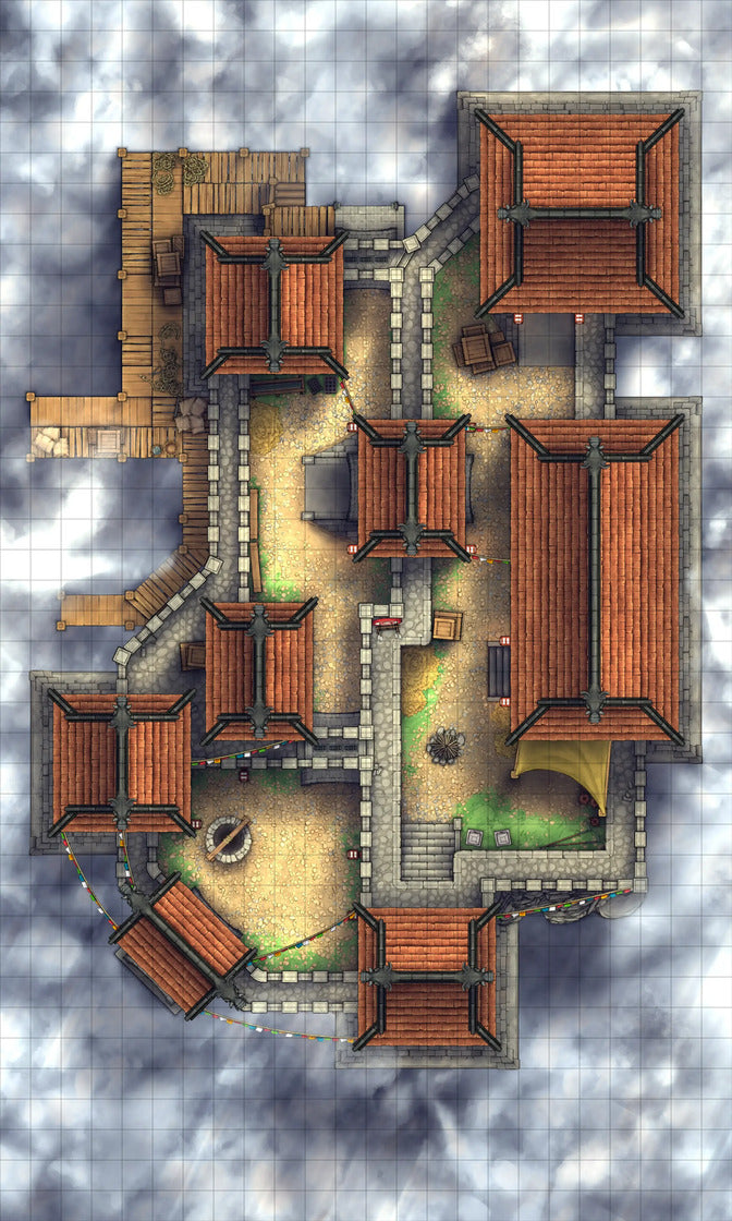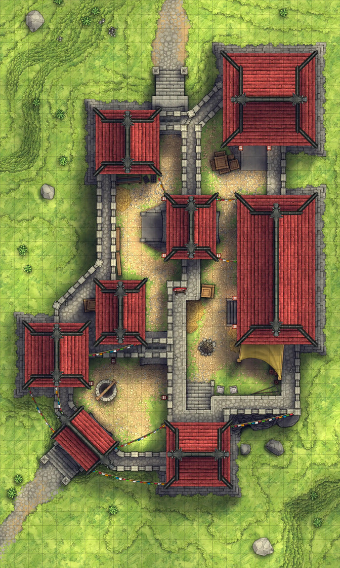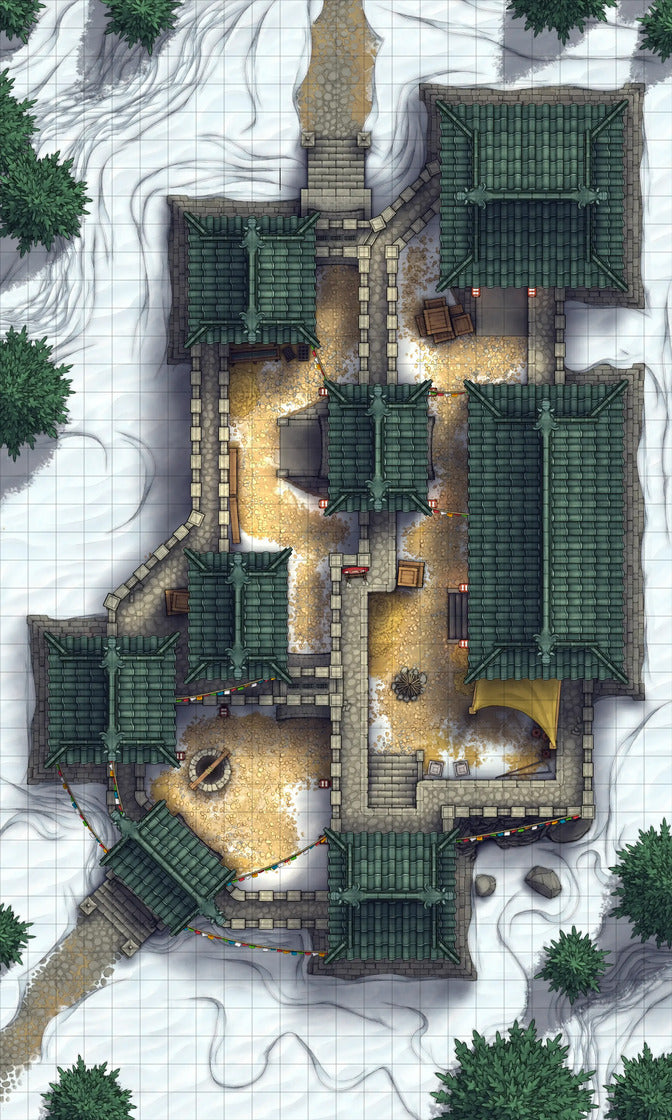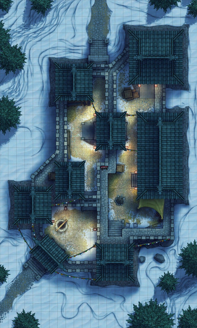 A riverine Chinese-inspired fortress battlemap for defending trade routes, guarding river crossings, collecting customs fees & holding ransom any local hostages! No matter whether in a local village or on the frontier, a sturdy wall & defense-in-depth will protect the Emperor’s interests … & his local commander.