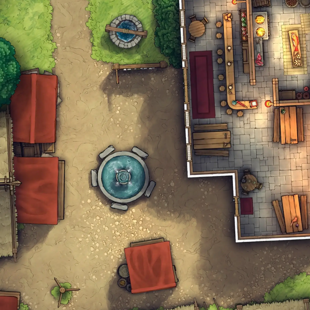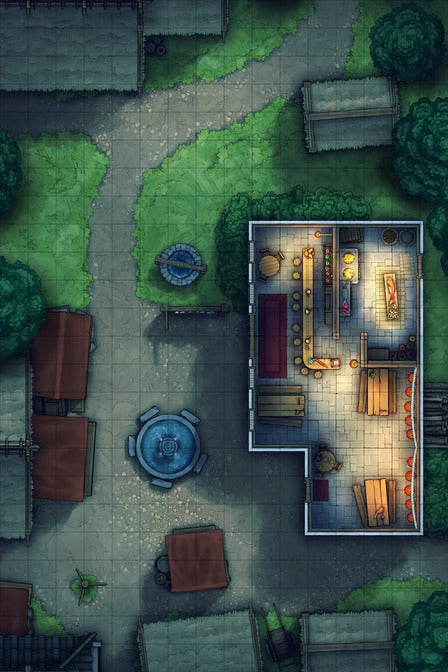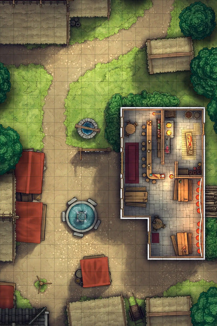 - Pre-made Village Square: A pre-made map of a grassy town square & tavern built with the assets!